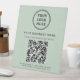 Modern sage green table top pedestal sign for your business with your QR code for customers to scan for a list of your products, services, prices, other information or mobile payments. Upload your logo and QR code and add your custom text, such as company name, phone number, street address or other information in a simple font.