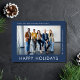 Minimal modern blue business Christmas holiday postcard featuring a photo of your corporate team. Personalise your happy holidays greeting, company name and customer/client thank you message in simple white typography. On the back, add an additional message of gratitude.