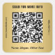 Simple modern QR code gold sticker for your business or organisation. Add your scannable QR code and customise up to four lines of text with your name, slogan, tagline, website, phone number, etc., or delete.