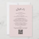 All in One Trendy Modern Black Calligraphy Script Chic Blush Pink Wedding Invitation... Our trendy "front and back" blush and black wedding invitation features chic modern calligraphy script combined with serif and sans serif text for a simple classic wedding invitation. The back of the invitation contains all of the details you would typically see on separate cards in the wedding packet. This modern style wedding invitation was designed to be both trendy and budget conscious... not to mention time-saving for busy brides-to-be. On the back there is also an example QR code graphic you can replace - in seconds - with your own QR code right on the personalisation template. All example text (aside from the graphic calligraphy elements) can be easily revised with your own information on the personalisation template.