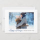 Modern Calligraphy Blue Ink Script Couple Photo Holiday Card