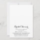 This modern calligraphy bridal shower invitation is perfect for a rustic wedding shower. The simple and elegant design features classic and fancy script typography in black and white.