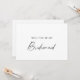 Elegant calligraphic postcard with a bride's proposal is perfect for a modern wedding. Romantic minimalist design features beautiful and elegant black typography on a white background with a clean and simple appearance. Customise postcard. Personalise the back of the postcard with a personalised message.