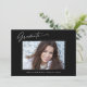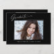 Trendy, modern and elegant graduation announcement cards, featuring design elements of modern text with calligraphy ink script. The graduate's photo on the front of the card is accented with a delicate & minimalist gradient boarder. The back of the card offers personalised text spaces for information about your graduation or can be cleared if you wish to hand write a message. Black & White or easily customise the background to match your school's primary colour or any colour of your choice. Perfect for the high school, college and university grad student.