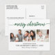 Modern Calligraphy Script Merry Christmas 3 Photo Holiday Postcard - Green Script