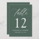 Add a touch of sophistication to your wedding reception with our elegant table number cards, featuring beautiful white calligraphy on a rich dark green background. This modern yet timeless design complements weddings of all themes and seasons, from lush spring ceremonies to intimate winter gatherings. Personalise each card with your names and wedding date to create a unique, heartfelt detail that enhances your celebration. Perfect for guiding guests to their seats, these table number cards effortlessly blend style and practicality, making them a beautiful addition to your wedding decor. Add each table number to your cart to order and check out when finished.
