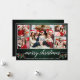 Modern Calligraphy Script 5 Photo Family Photo Collage Merry Christmas Card includes Watercolor Christmas Holly Berries - Rustic Country Green Wood