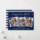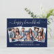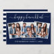 Modern Trendy Calligraphy Script 3 Photo Family Photo Collage Happy Hanukkah Card - Navy Blue and White Stripes Back