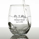 Modern Calligraphy Heart Mr. and Mrs. Wedding Stemless Wine Glass