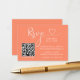 Modern Calligraphy Heart Wedding QR RSVP Coral Enclosure Card