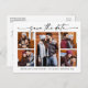 Modern Minimalist yet Elegant Calligraphy Ink Pen Script Couple 5 Photo Wedding Engagement Announcement Save The Date Postcard
