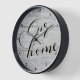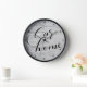 If you're wanting to add a little modern farmhouse look to your home, then this grey barnboard wood look clock with a round, deep wooden frame may be just the accent your are in search of. There is modern calligraphy text that says, "Our home" on it in black with black numerals all around that you can change to be any colour(s) you want by using the blue EDIT further button. If you require any assistance, please email niteowlstudio@gmail.com.