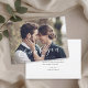 Custom-designed wedding photo thank you card featuring modern hand calligraphy on the front, personalised message on the back.
