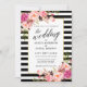 Modern Calligraphy Pink Floral Striped Wedding Invitation