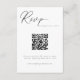 Modern minimalist QR code details card with elegant calligraphy font.