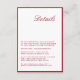 The Modern Calligraphy Red Wedding Detail Card is a chic addition to your wedding stationery suite. Featuring elegant, flowing calligraphy paired with a vibrant red design, this detail card offers your guests essential information in a stylish format. Perfect for sharing details such as directions, hotel accommodations, wedding timeline, and dress code, this card ensures that your guests are well-prepared for your special day. Its sophisticated design ties beautifully with a red-themed wedding, adding a touch of class and clarity.