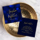 Modern chic business card featuring your name in a trendy calligraphy script against a sapphire blue bokeh lights pattern background on the front side and a dark blue colour background back side. It's a versatile card that's suited for any profession like event planner, wedding planner, hair stylist, make artist, consultant, etc.