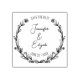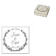 This "Save the Date" rubber stamp features a flower frame with couple calligraphy names and celebration date.
