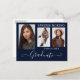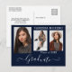 Modern Calligraphy Script 3 Photo Blue Graduation Postcard