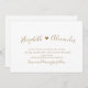 Modern elegant script white and gold All in One wedding invitation cards. Enhance your celebration with a sophisticated black typography design, adorned with a delightful chic calligraphy script font and a hand-drawn love heart accent in white and gold. Back of the modern invitation contains all of the all essential „wedding details” you would typically see on separate cards within the wedding packet. This modern budget all-in-one wedding invitation feature reception, accommodations, RSVP wedding website. Easily to personalise. Make a warm and welcoming atmosphere for your guests to share the joy of your special day. Order now and make your wedding celebration truly unforgettable!