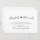 Modern elegant script black and white All in One wedding invitation cards. Enhance your celebration with a sophisticated black typography design, adorned with a delightful chic calligraphy script font and a hand-drawn love heart accent in black on white background. Back of the modern invitation contains all of the all essential „wedding details” you would typically see on separate cards within the wedding packet. This modern budget all-in-one wedding invitation feature reception, accommodations, RSVP wedding website. Easily to personalise. Make a warm and welcoming atmosphere for your guests to share the joy of your special day. Order now and make your wedding celebration truly unforgettable!