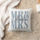 Modern Calligraphy Script Mr Mrs Wedding Dusty Blue Throw Pillow. Personalise your last name and all text colours to match your home.