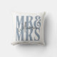 Modern Calligraphy Script Mr Mrs Wedding Blue Cushion