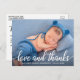 Modern Calligraphy Script New Baby Love and Thanks Photo Thank You Postcard - White Script
