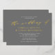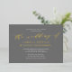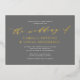 This chic yet simple wedding invitation features modern calligraphy script "the wedding of" and your names in foil, a chic grey background, and elegant typography. This design is a fabulous choice for any style of wedding. You can customise this design even further by adding a photo or additional text to the back. Foil is available in gold, silver, or rose gold and absolutely shines! Choose raised foil wedding invitations to add a touch of luxury at a budget friendly price!