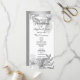 Modern, elegant, simple black and white calligraphy script wedding program with chic watercolor flowers.