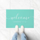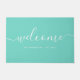 Doormat featuring the word "Welcome" in modern calligraphy script and that you can personalise with your family name all against an editable background colour (click customise to change).