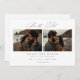 If you love simple design and beautiful photography, this two-photo save the date is perfect. The landscape layout spotlights your favourite portraits, while classic serif type keeps details crisp. On the reverse, a thoughtfully placed QR code makes it effortless for guests to view your site and updates.