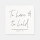 These personalised elegant wedding napkins featuring the wedding vow "To have and to hold" are an elegant addition to your wedding reception, wedding dinner or wedding party. Sophisticated black minimalist calligraphy script design on a solid white background - simple and elegant. All colours - text and background - can be changed using the design tool! Matching wedding wine bottle labels are available in my shop.