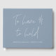 Cherish your memories with this wedding guestbook featuring the wedding vow "To have and to hold" in sophisticated minimalist calligraphy script design - simple and elegant. This is a great wedding guest book for any minimal and modern wedding. You can change the colour of the script font to any colour you like and customise this guest book with your own names and date on front and spine. Default background is Dusty Blue but you can change the colour in the design tool too.