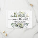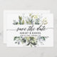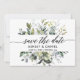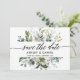Modern Calligraphy Script Elegant Watercolor Botanical Greenery Wedding Engagement Announcement Save The Date Card includes eucalyptus leaves, green botanical foliage, dusty blue leaves and other beautiful botanical greenery.