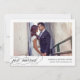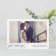 Our chic and modern wedding announcements are the perfect way to let friends and family know about your elopement, secret ceremony or private wedding! A simple white border frames your favourite horizontal wedding photo, with "just married" beneath in elegant, modern calligraphy script lettering, and your names, wedding date and wedding location. Add a second photo to the back with a personal note -- perfect for thanking friends and family, letting them know about your ceremony, or announcing a reception or party to come.
