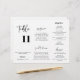 Turn this paper sheet into a modern wedding tri-fold menu, table number and program with information about the timeline, things that are good to know, food and bar menu. Simply fold, tape the seam on the back and use this modern wedding stationery program for your wedding reception.