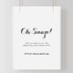 This modern calligraphy wedding oh snap sign is perfect for a rustic wedding or bridal shower. The simple and elegant design features classic and fancy script typography in black and white. Personalise the sign with your wedding hashtag.