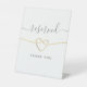 Elegant, simple white wedding Reserved tabletop sign with faux gold rope heart and modern calligraphy script.