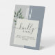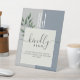 Elegant, modern, simple, botanical dusty blue Guest Book - Kindly Sign wedding tabletop sign, with giant monogram initials and watercolor greenery.