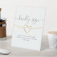 Elegant, simple white Kindly Sign wedding tabletop sign with faux gold rope heart and modern calligraphy script.