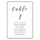 Custom-designed wedding seating chart table number cards featuring modern hand calligraphy design.