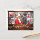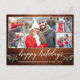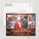 Modern Calligraphy Script 5 Photo Couple Photo Collage Happy Holidays Postcard includes Watercolor Christmas Holly Berries - Rustic Country Wood