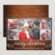 Modern Calligraphy Wood 5 Photo Merry Christmas Holiday Card