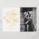 Celebrate the New Year in style with this customizable gold foil Happy New Year card, featuring modern calligraphy paired with beautiful greenery accents. You can easily personalize the card with your own photos, names, and a message. This elegant new year card makes the perfect greeting for friends, family, or colleagues to start the year off right. Whether you want a personal touch for a loved one or a unique card to share with your circle, this card is designed to make a lasting impression.