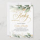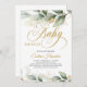 Modern callygraphy eucalyptus leaves baby shower invitation