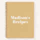 Elegant camel beige and white minimalist modern personalised Custom Name text monogram Recipe Book Or Notebook.