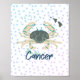 Modern astrological poster print features a crab on starry background, representing the Zodiac's Cancer, the sign for those born between June 21 - July 22