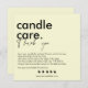 Designed for modern makers and small businesses, it includes tips for safe and optimal candle use, a gentle reminder to keep candles away from children and pets, and a prompt for customer feedback. The elegant layout and minimalist aesthetic make it a perfect insert for packaging or pop-up displays.