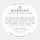Ensure your brand conveys professionalism and care with our elegantly designed candle warning label. This round label features a clean and clear black and white layout with essential safety information, presented in a sophisticated font that complements any aesthetic. The customisable space at the top allows you to prominently display your business name, adding a personal touch while reinforcing your brand identity. This design is the perfect finishing touch for your handcrafted candles, communicating important safety guidelines with style and clarity.